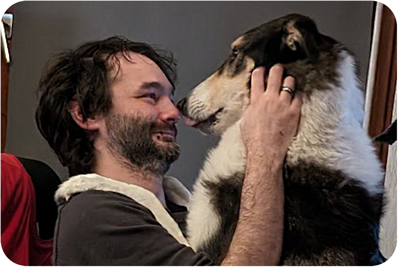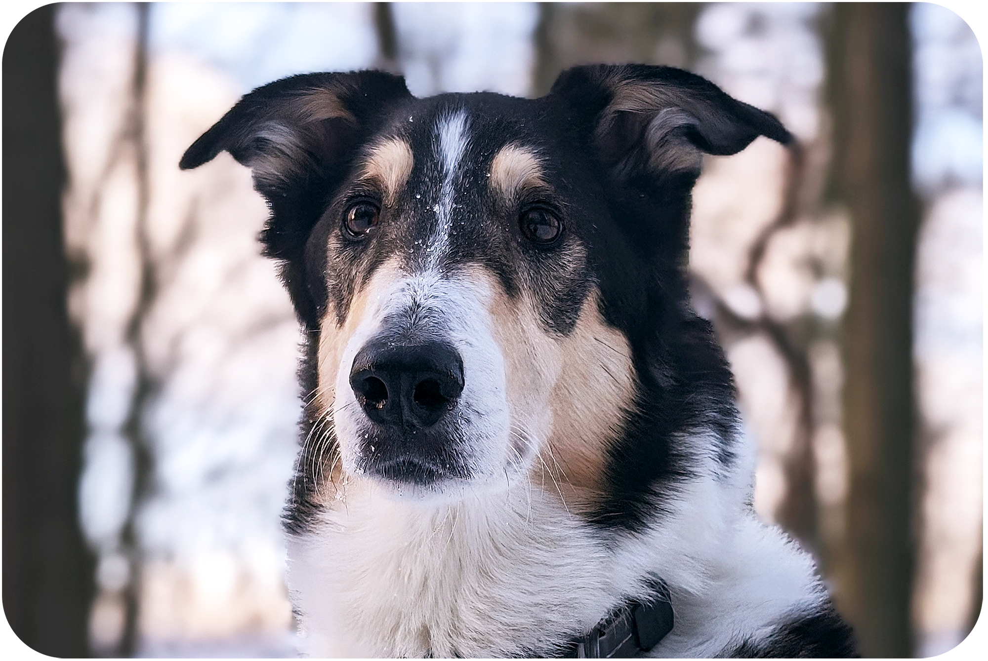 10 years old Collie mix Milo makes sure we take regular breaks by letting us know that it´s time for snacks or going out!